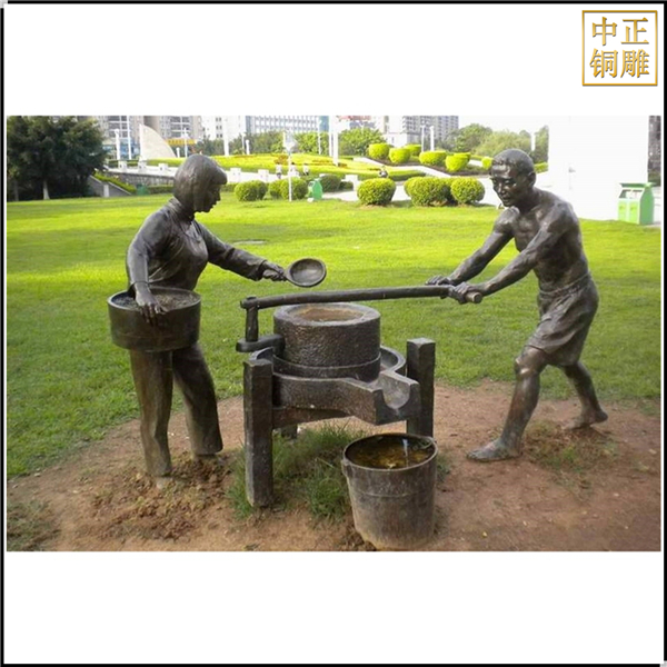 中正銅雕-推石磨民俗人物雕塑、推石磨民俗人物雕塑價格、推石磨民俗人物雕塑廠家,我公司實行現代化企業管理,成功導入TPS生產管理系統,形成集塑制泥塑模型、泥稿后翻制模具、翻制石膏模型、工藝師加工制作、營銷為一體化作業的生產線,加上先進的銅雕加工設備,優秀的美術設計師,雕刻經驗豐富的制作人員。