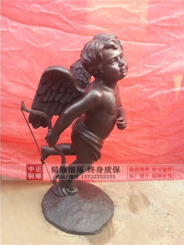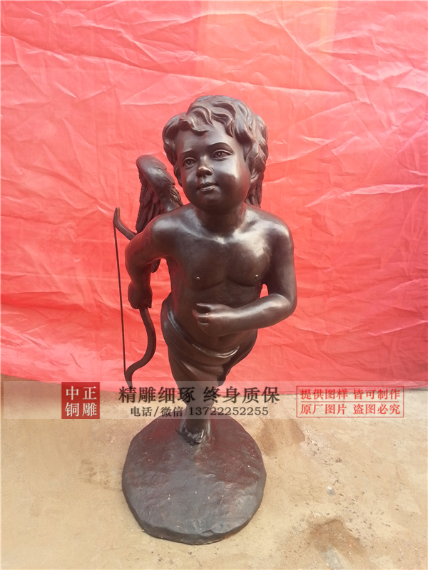 在古希臘神話中,丘比特是神話中非??蓯壅{皮的小天使,整天背著愛神之箭促成姻緣,因此銅雕廠家塑造的丘比特銅雕塑也多是小天使的造型。