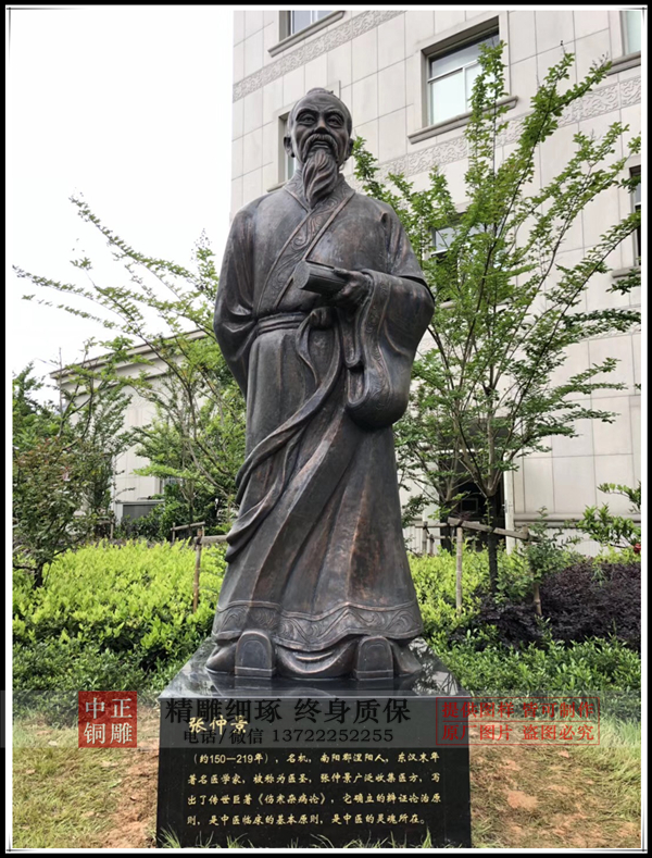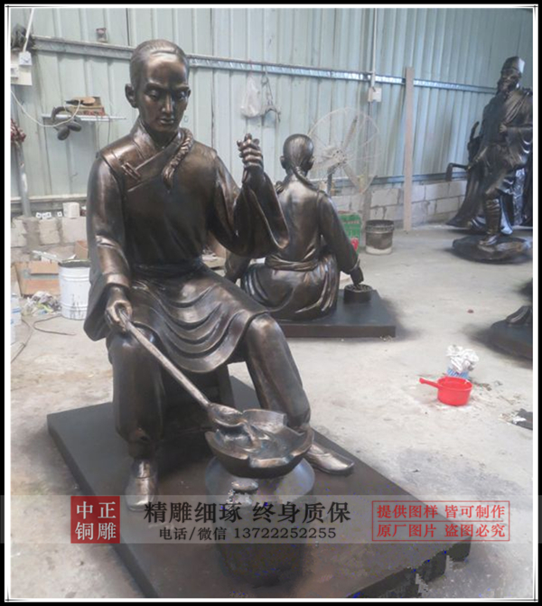 古代人物雕塑是人物雕塑中重要的一種,我廠通過對肖像的準確表現,把古代人物雕塑形體展現,比如銅關公像,通過這一古代人物雕塑展示了關羽的忠勇形象。張仲景、華佗雕塑等等,都是通過雕塑的技法,展示出古人的風姿。