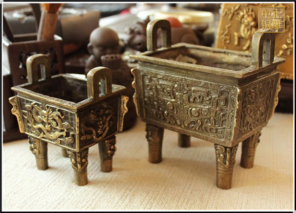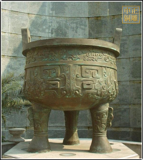 關(guān)于“鼎”的來歷及作用:鼎本來是古代的烹飪之器,相當于現(xiàn)在的鍋,用以燉煮和盛放魚肉。許慎在《說文解字》里說:“鼎,三足兩耳,和五味之寶器也?!庇腥銏A鼎,也有四足方鼎。最早的鼎是黏土燒制的陶鼎,后來又有了用青銅鑄造的銅鼎。