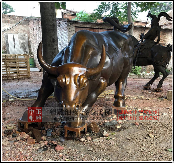 1992年,由著名藝術(shù)家韓美林根據(jù)金牛山傳說創(chuàng)作的巨型銅牛,被立在金牛山東側(cè)綠樹環(huán)繞的草坪中。銅牛身高、身長各15米,寬7米,重30噸,它身馱金寶,昂首翹尾,兩眼圓瞪,頗有氣勢。據(jù)了解,當(dāng)年巨型銅牛是在北京分塊鑄成,運到濟南后再組裝起來的,“落成之時,盛況空前”。在巨型銅牛腳下的臺基前,還鐫著由著名書法家啟功先生手題的“天下第一牛”巨字石刻,環(huán)繞臺基,則是有關(guān)金牛山傳說的浮雕。