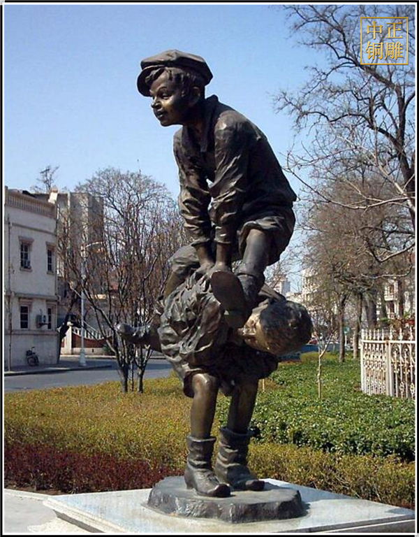 中正銅雕-兩個(gè)小男孩跳背人物銅雕塑、兩個(gè)小男孩跳背人物銅雕塑價(jià)格、兩個(gè)小男孩跳背人物銅雕塑廠家,本公司打造了一支強(qiáng)有力的管理隊(duì)伍和創(chuàng)新團(tuán)隊(duì),在國(guó)內(nèi)同行中成為佼佼者。加強(qiáng)與國(guó)內(nèi)知名專家的合作,提升公司的實(shí)力,打造公司文化品牌,提升公司的品牌價(jià)值及創(chuàng)造力,為社會(huì)創(chuàng)作更多有品位的雕塑作品。無(wú)論從黃銅鑄造,錫青銅鑄造都能熟練掌握其材料比例和配方。能使鑄件抗氧化,防腐蝕性,防酸,防堿及使鑄件外力沖擊而不折,能熟練鑄造銅鐘,銅鼎,編鐘,銅鼓等高難度的產(chǎn)品。