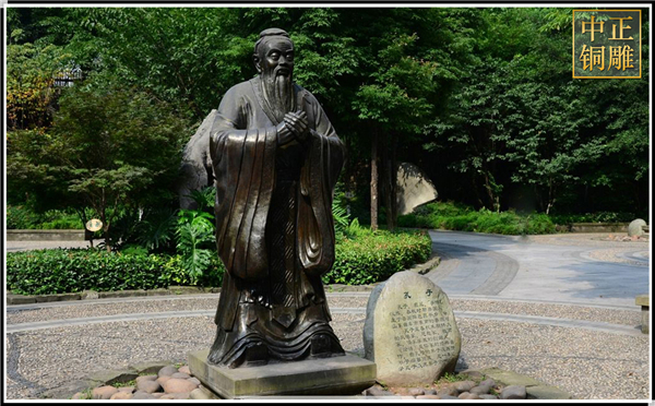 孔子一生只有一位妻子——亓官氏。根據有些史書的記載,孔子與亓官氏的感情并不是很好,后來甚至可能還離婚了。但孔子依然終生沒有納妾,妻子亓官氏離去后也沒有再娶。不僅孔子終生沒有納妾,孔子的兒子孔鯉(子魚)、孫子孔伋(子思)可能都沒有納妾。雖然根據有些史料的記載,孔子、孔鯉、孔伋三代可能都離過婚,但祖孫三代卻踐行了一夫一妻。中正銅雕-銅雕孔子像、銅雕孔子像價格、銅雕孔子像廠家,我廠是一家以設計、制作、安裝為一體的發展型企業。公司坐落在中國銅雕之鄉---河北唐縣,成立于1984年。公司自成立以來,以優質的雕塑工藝,優異的性價比,一體化的銷售網絡,高效、完善的售后服務,飛速發展。成為了擁有設計、銷售、生產、安裝、維護為一體的銅雕塑制作商。