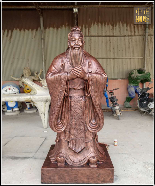 孔子自幼父親早逝,隨著母親過(guò)著清貧的生活,但這也阻擋不住孔子的好學(xué)之心,因而才能成就一番事業(yè)。孔子在19歲的時(shí)候,遵循其母親的決定娶宋人亓官氏之女為妻,這也是他一生之中唯一的妻子。既然孔子沒(méi)有新歡,而亓官氏為孔子產(chǎn)下了一兒一女,兩人本應(yīng)舉案齊眉,共度一生,但孔子卻在多年后提出與亓官氏“離婚”,這也讓人疑惑不解。中正銅雕-室外大型孔子定做、室外大型孔子定做價(jià)格、室外大型孔子定做廠家,我廠是一家以設(shè)計(jì)、制作、安裝為一體的發(fā)展型企業(yè)。公司坐落在中國(guó)銅雕之鄉(xiāng)---河北唐縣,成立于1984年。公司自成立以來(lái),以優(yōu)質(zhì)的雕塑工藝,優(yōu)異的性價(jià)比,一體化的銷售網(wǎng)絡(luò),高效、完善的售后服務(wù),飛速發(fā)展。成為了擁有設(shè)計(jì)、銷售、生產(chǎn)、安裝、維護(hù)為一體的銅雕塑制作商。