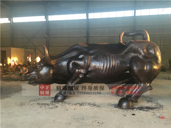 牛給人的印象,是一種溫順而踏實(shí)的動(dòng)物,肯吃苦、憨厚樸實(shí),是人類的好幫手,而銅牛雕塑的多樣造型,具有著力量與旺財(cái)?shù)南笳饕饬x,尤其在現(xiàn)代化的今天,銅牛雕塑更被賦予了開拓創(chuàng)新、積極進(jìn)取、團(tuán)結(jié)奉獻(xiàn)的精神意義,所以說(shuō),銅牛雕塑不僅僅是一種雕塑產(chǎn)品,更是一種精神的象征,能夠給人以思想上的激勵(lì),在企業(yè)當(dāng)中尤為適用。中正銅雕-華爾街銅牛雕塑廠家,定做華爾街銅牛雕塑廠家,大型華爾街銅牛雕塑廠家,唐縣中正銅雕工藝品廠是鑄銅雕塑的廠家。擁有設(shè)計(jì)師和雕塑團(tuán)隊(duì),引進(jìn)的鑄造技術(shù),開發(fā)出一系列的藝術(shù)性銅制工藝品。