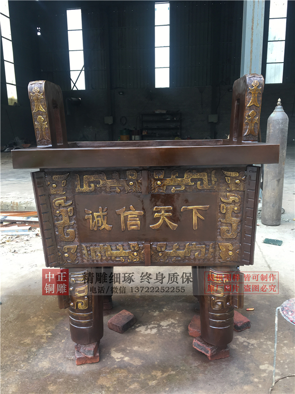 鼎傳承久遠(yuǎn),又地位極高。在《國家寶藏》節(jié)目中,現(xiàn)藏于上海博物館的大克鼎作為“鼎”中好物曾全面展示,讓人看了震撼不已,它不僅代表著古時候鑄鼎工藝的高度發(fā)達(dá),又承載著中國五千年文明的文化基因,雖然只是一個用于祭祀的青銅鼎,但其底蘊(yùn)傳承和文物價值不可估量。中正銅雕-銅鼎現(xiàn)貨價格,定做銅鼎現(xiàn)貨價格,加工銅鼎現(xiàn)貨價格,我廠設(shè)計制作銅雕藝術(shù)雕塑、大型銅雕城市雕塑、銅雕廣場雕塑,古建寺廟銅佛像,銅浮雕,銅雕鼎等,我們具有優(yōu)越的地理位置,離107國道10公里,離天津海港160公里,交通便利。公司產(chǎn)品樣式眾多,歡迎您來圖來樣加工和訂做,本公司全體員工熱情迎接您的到來!