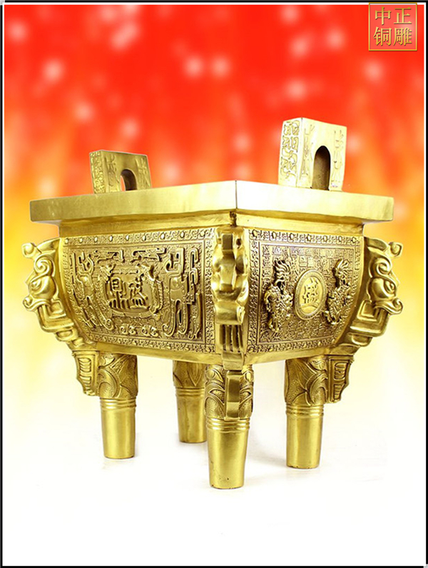 自古以來由原來的“天子九鼎,諸侯七鼎,大夫五鼎,元士三鼎或一鼎”演變成現代的很多寓意了,比如說“一言九鼎”、“誠信鼎”、“世紀寶鼎”“聚財寶鼎”等等,我公司也可以根據客戶的需要進行各種規格的銅鼎制作,種類齊全,而且鼎身的花紋和文字是可以根據客戶的具體需要進行鑄造的,可以來圖,來樣進行制作。中正銅雕-吉祥銅鼎鑄造、吉祥銅鼎鑄造價格、吉祥銅鼎鑄造廠家,我廠是一家以設計、制作、安裝為一體的發展型企業。公司坐落在中國銅雕之鄉---河北唐縣,成立于1984年。公司自成立以來,以優質的雕塑工藝,優異的性價比,一體化的銷售網絡,高效、完善的售后服務,飛速發展。成為了擁有設計、銷售、生產、安裝、維護為一體的銅雕塑制作商。