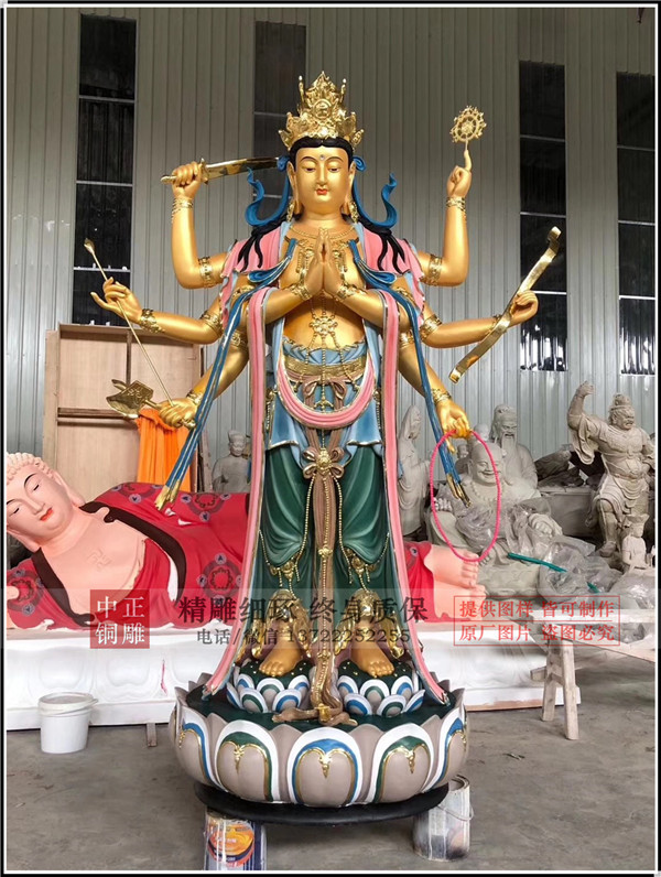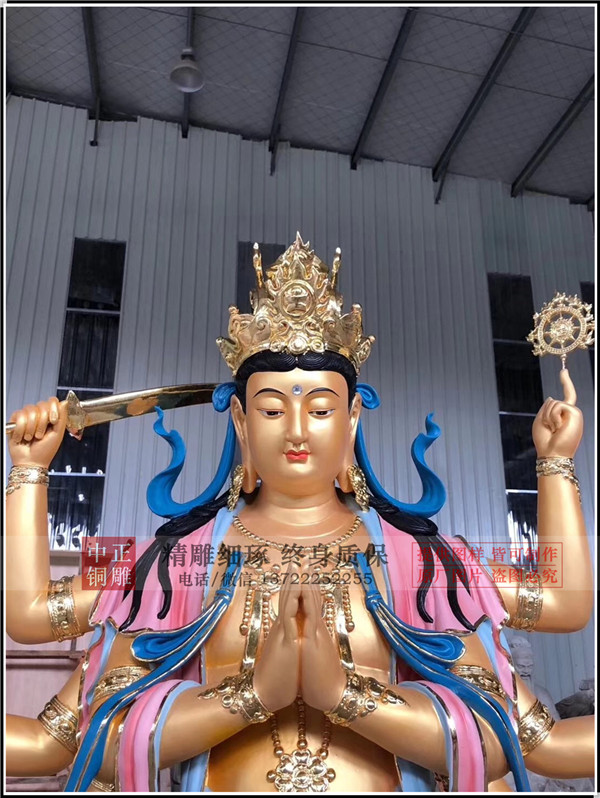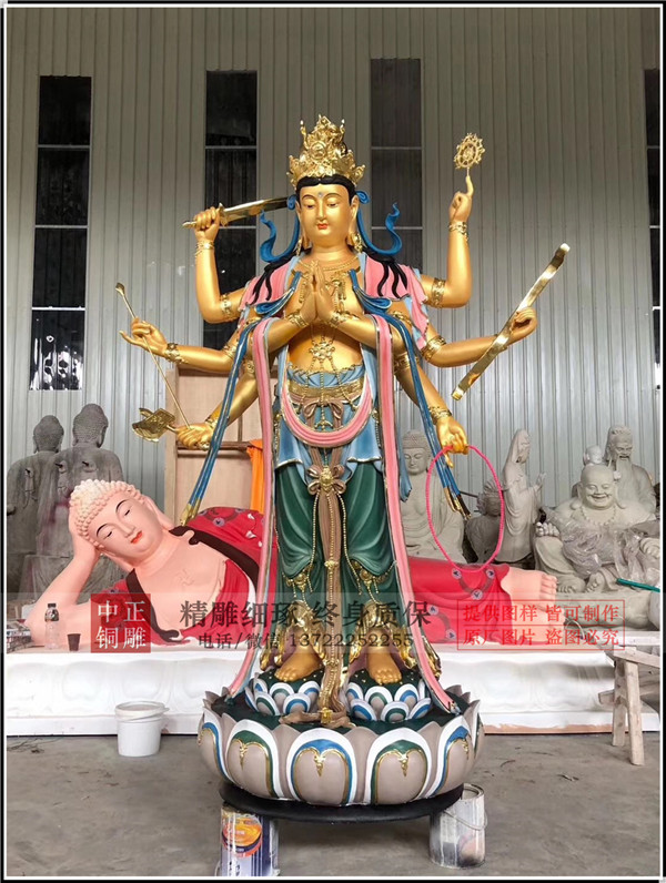 剛剛生產的斗姆元君鑄銅雕塑生產彩繪完畢,發貨青海,更多銅雕產品,請持續關注。
